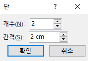 2단은 기타 단을 클릭하고 개수를 2 간격은 2로 하시면 정확하게 단을 구분할 수 있습니다
