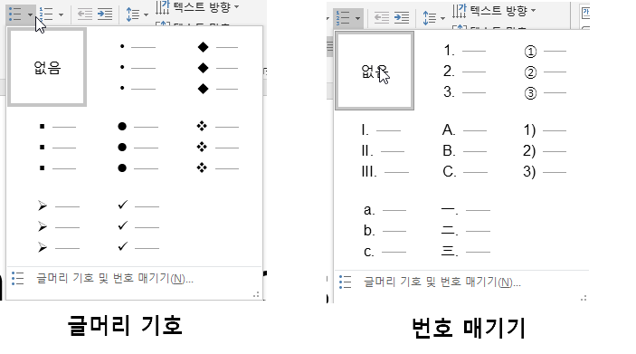 ② 번호 매기기 : 줄 맨 앞에 기호 대신 번호를 넣을 때 사용합니다