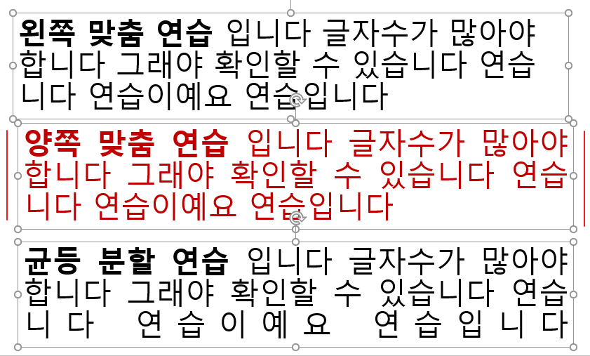 왼쪽 맞춤과 양쪽 맞춤의 차이를 아셔야 합니다